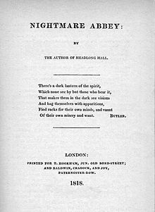 Given all these indirect and direct homages to dramatic form, then, while we (rightly) think of Nightmare Abbey as a parody of the Gothic novel, it is also worth considering Peacock’s novella as a Romantic reinvention of the Jonsonian city comedy. Peacock’s book has all the hallmarks of the city comedies of the seventeenth century but given a characteristically Romantic twist in its deployment of the taste for the Gothic. Nightmare Abbey in its ‘picturesque’ setting might not be a city, but it is still a place where the follies indigenous to urban life are exposed and mocked. The gloomy, mist-shrouded fens, the crenelated turrets, the crumbling, ivy-covered edifice is a monument to the contemporary Romantic fashionable taste for the Gothic, a propensity in literature mocked by Peacock as surely as Jonson mocked the literary pretensions of his own time. When a parcel arrives for Mr Listless, its contents are a representation of all the Regency foibles of the urban reading public which Mr Flosky delineates as he unpacks the parcel. There is the new type of novel centred on ‘misanthropy’, a new poem with a fashionably disaffected hero and a popular Review magazine in which authors are permitted to comment favourably on their own work. This summary of the work of William Godwin, Lord Byron and Robert Southey is as pertinent to Peacock’s audiences as were Jonson’s diatribes against his contemporaries’ literary pretension. Just like Jonson, Peacock saw in his colleagues’ work a disconcerting trend for ‘morbidity’ in literature, a too-intense focus on melancholy.